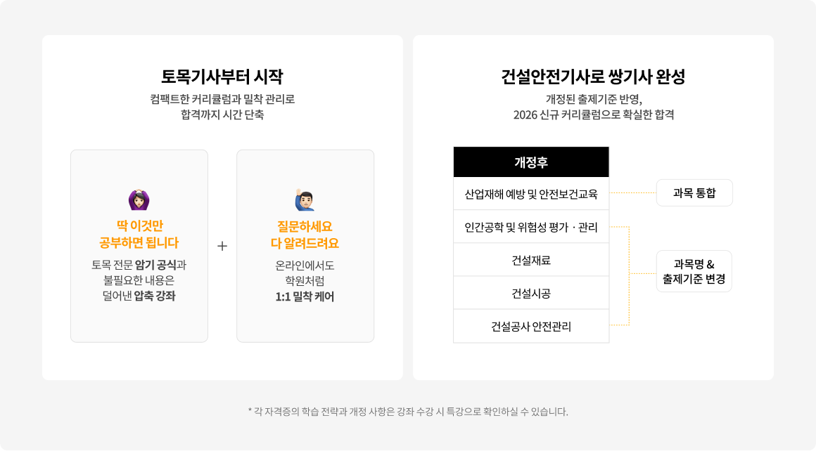 토목부터 시작, 건설안전으로 마무리 각 자격증에 충실한 커리큘럼